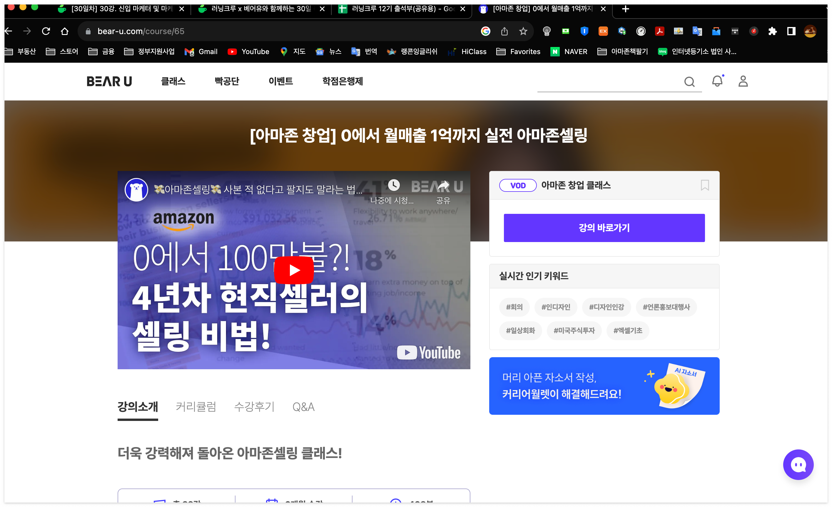 물론, 해당 강의가 시의성이 좀 떨어지는 부분도 분명 존재한다고 본다. 아마존이라는 셀링 사이트는 분명 자주 업데이트가 되고, UI도 자주 변경이 되는 부분이 생기는데, 해당 수업의 경우 그 부분은 강의를 만든 그 시대에 아직 그대로이다.