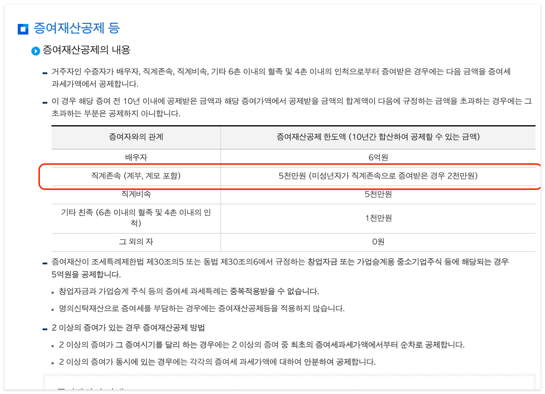 이렇게 우리나라는 미성년, 성년에 대한 증여재산공제 금액이 정해져 있다.